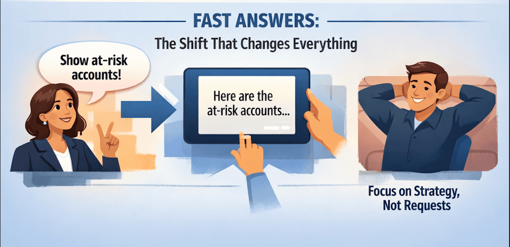 You don’t need to replace your data infrastructure. You need to add a natural language interface on top of it — one that lets your VP of Sales ask “which enterprise accounts haven’t expanded in 90 days?” and get a reliable answer without a ticket or a training session. AI-powered query tools that sit on top of your existing warehouse can reduce time-to-insight from days to under two minutes, with zero change to your underlying data model.