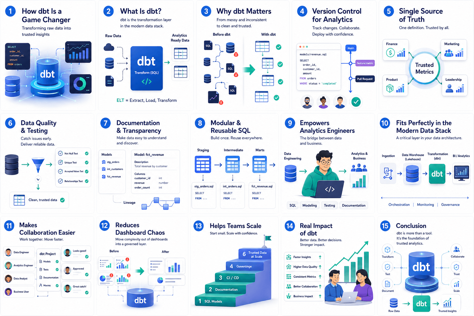 dbt is a game changer because it brings structure, trust, and engineering discipline to the analytics world.